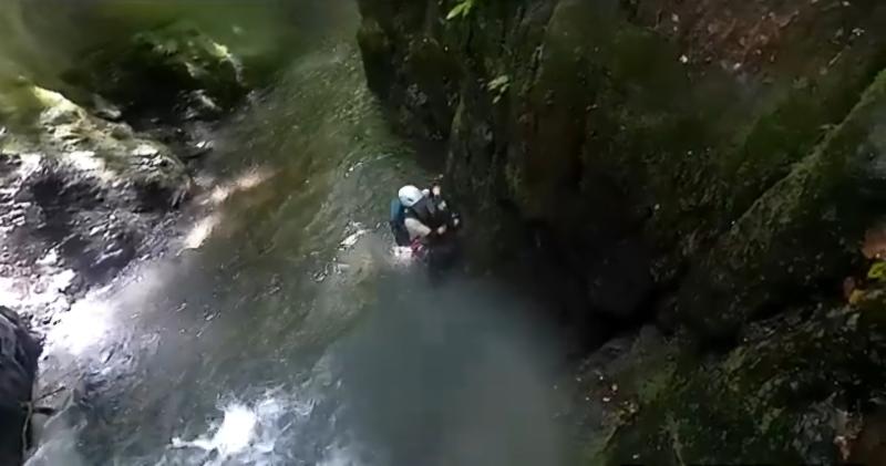 ただここ最近の大雨でかなり増水し、水流に抗えない場面もありました。越えられるか不明瞭な滝は高巻きしてみましたが、巻く方がかえって困難で結局懸垂で降りました。初級の割にはなかなかハードで、泳ぎが苦手な人には困難な沢だと感じました。
