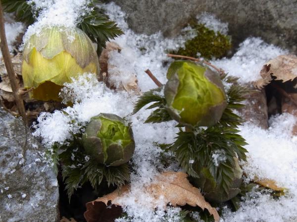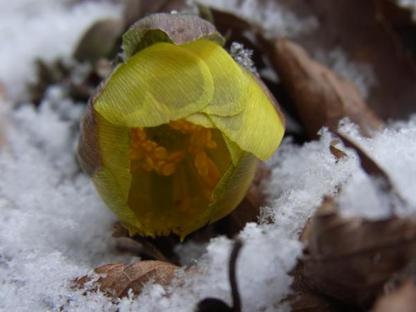 雪の中に、黄色い花が咲いているのを見つけると、かわいくて、幸せな気持ちになります。