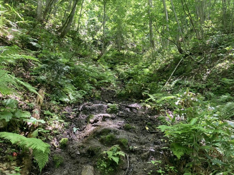 登山道に入ると夕日岳よりも笹が覆い茂っていて、