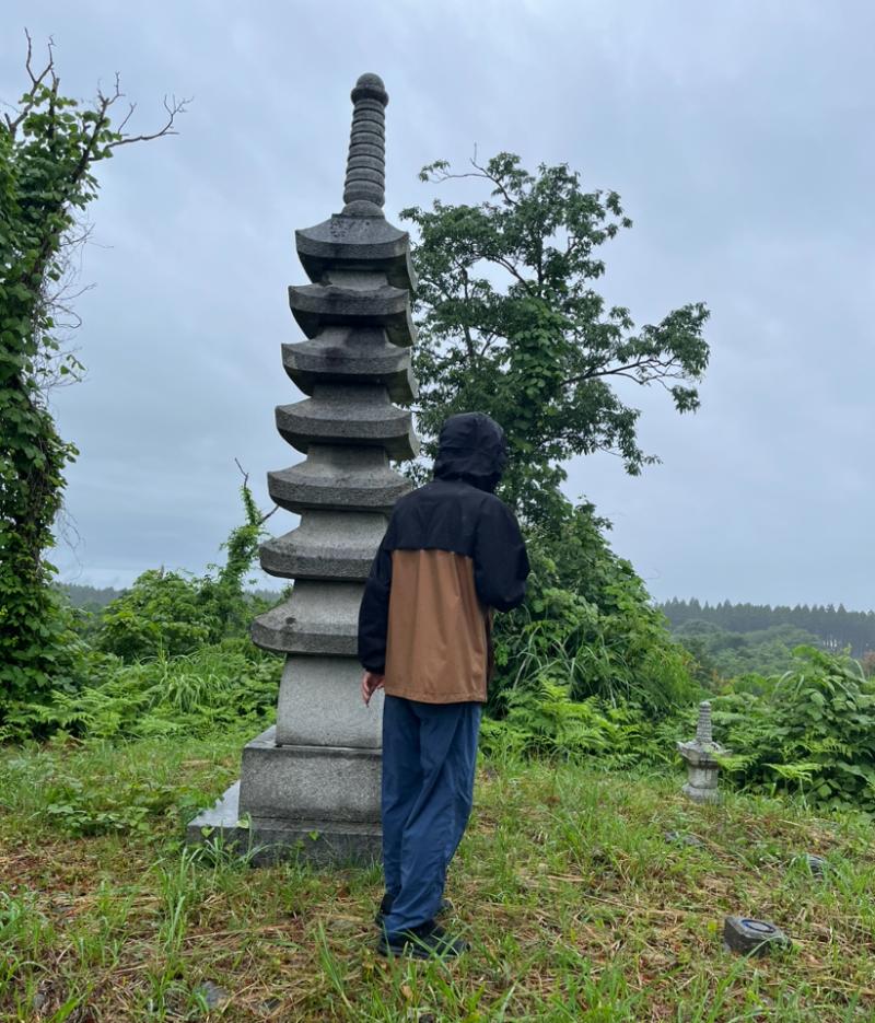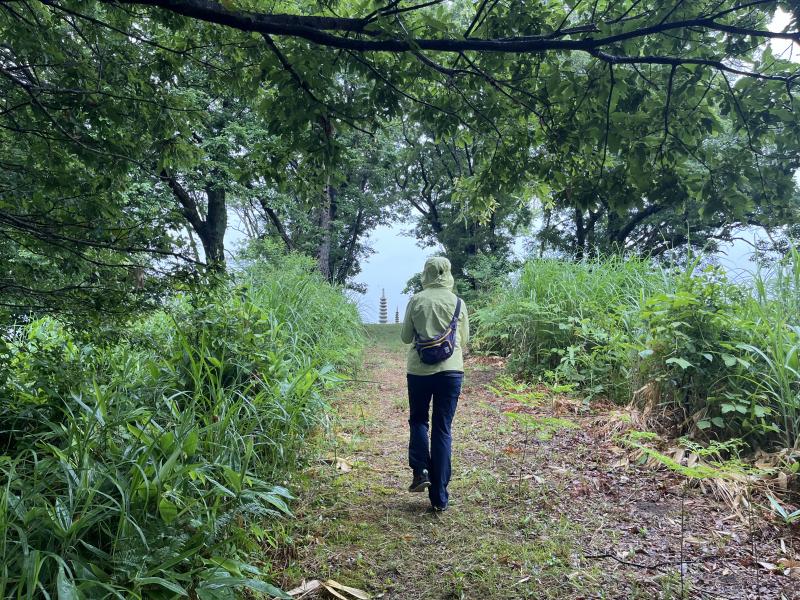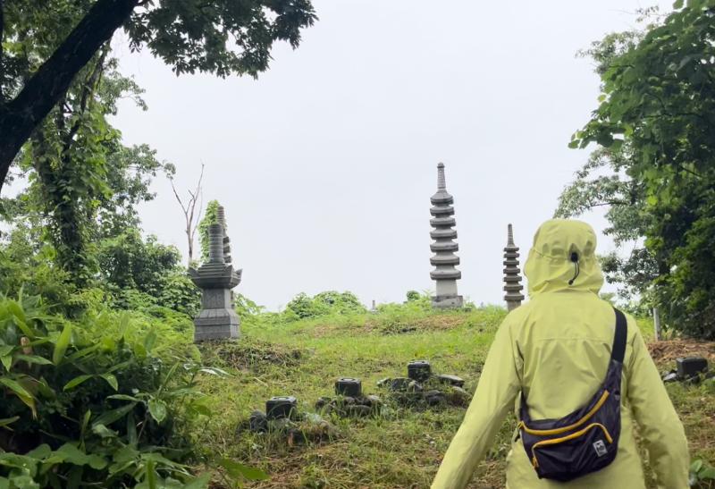 山頂には、出土した石塔が復元されていて、おもしろい風景でした。