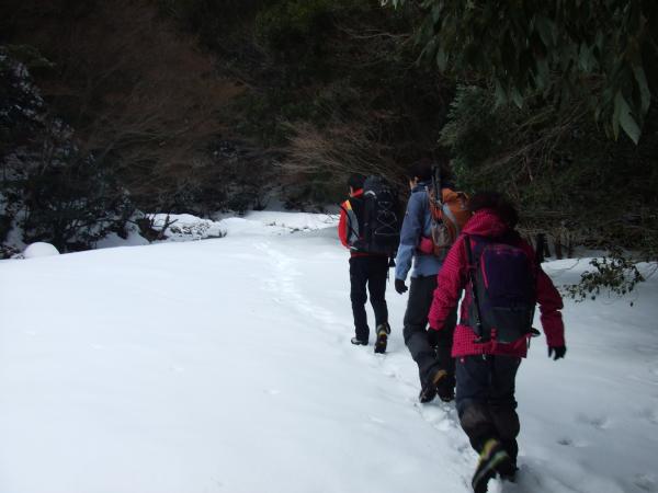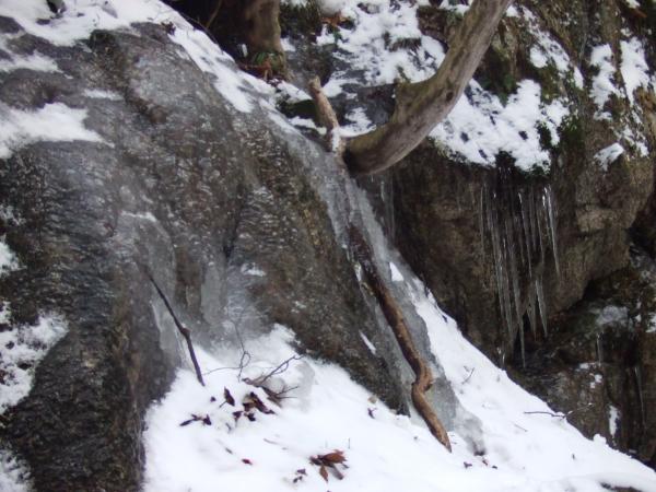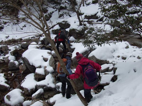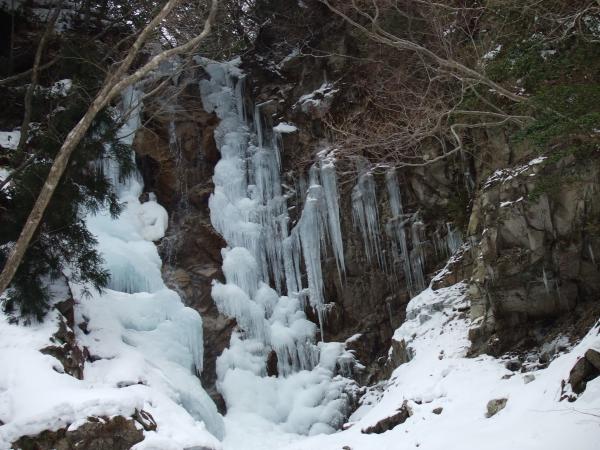 川沿いを歩いていると滝が凍っていたり、大きなつららがあったりと楽みながら登れました。