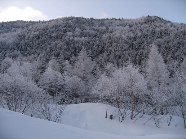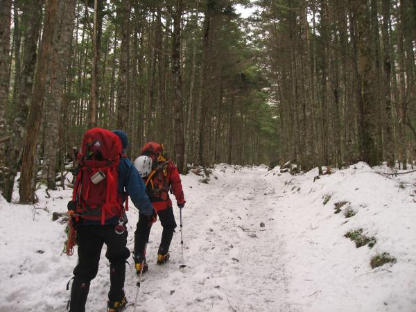 - 【美濃戸口~赤岳鉱泉】この時期は美濃戸口に駐車してから赤岳山荘までは歩くのが一般的。四駆でチェーンを巻けば赤岳山荘まで行けるとのこと。途中ショートカットコースを利用。アイゼン着用。
