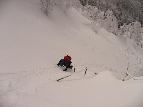 【文三郎尾根・地蔵尾根】登りは文三郎尾根で下りは地蔵尾根を利用したが、どちらも積雪により傾斜が増しているのでどちらも下りが特に要注意です。