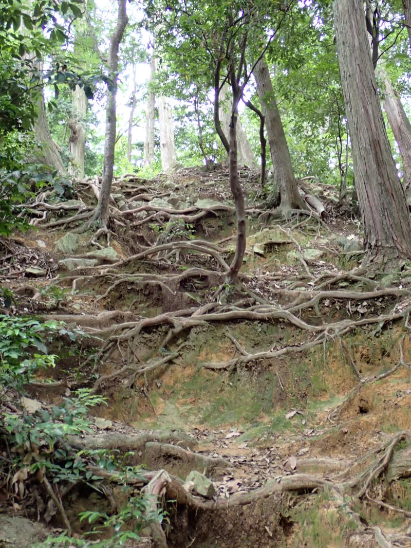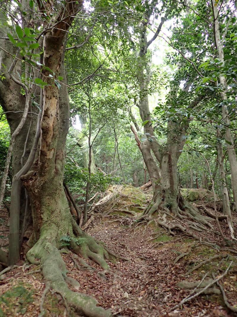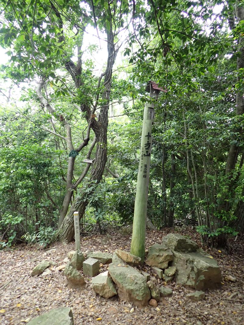 尾根道に出ると、サントリー山を途中経由して、天王山の山頂へ。ここには昔、山﨑城があったと言い、城の遺構が残されています。帰路は往路を戻りながら、小倉山と十方山に寄り道して、小倉神社に下山しました。