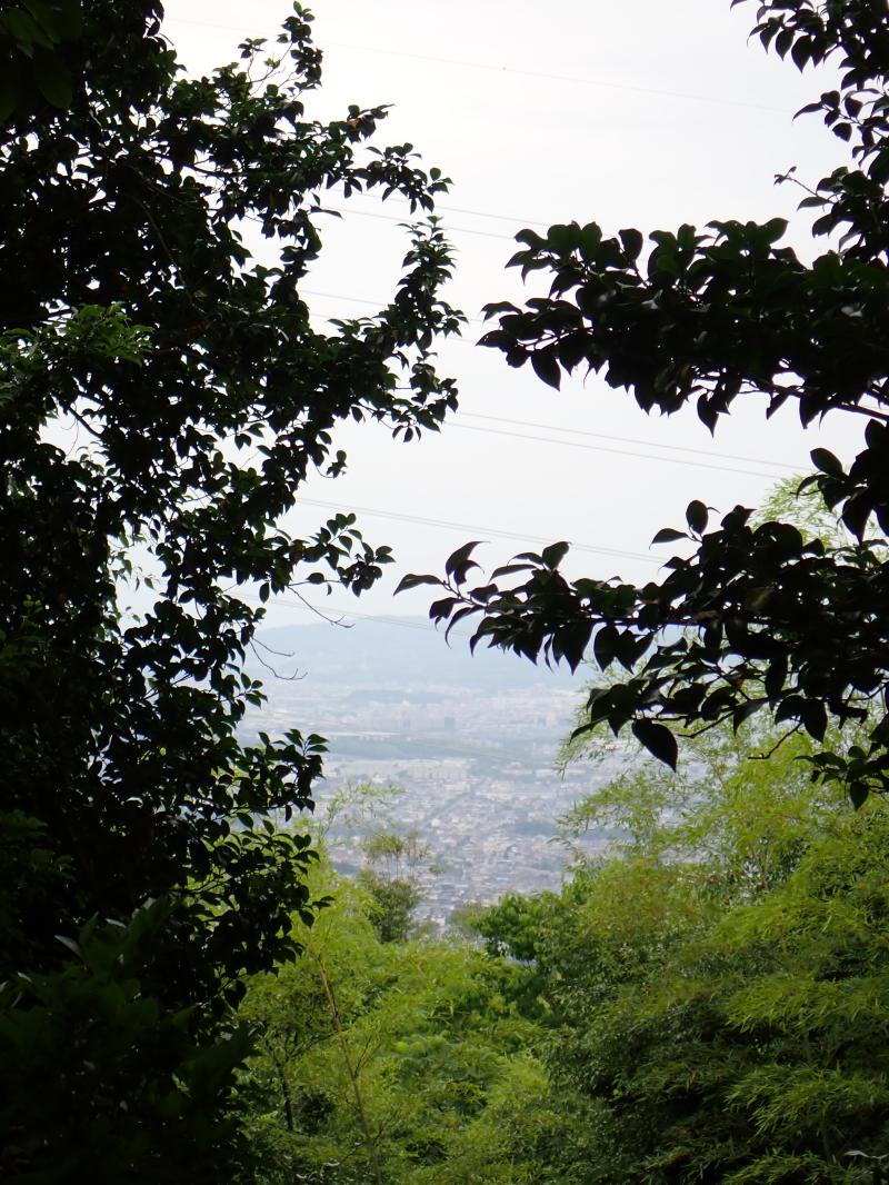 小倉神社から出発。取り敢えず、急登コースを選んで展望広場を目指す。この辺りは竹林が多い為、しっかり虫対策が必要です。しばらく登ると傾斜が緩くなり、展望広場に到着。京都市内を一望できます。