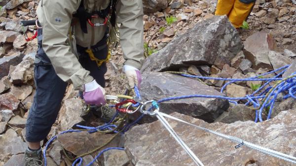 敗退した8P目終了点からまっすぐは懸垂で降りられず、大滝方向へ少しトラバースしてから下降。