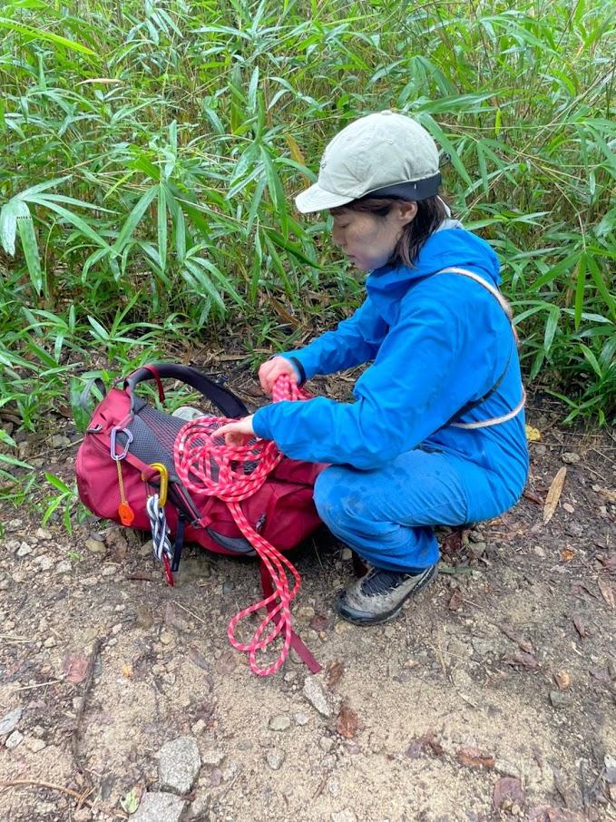 沢歩き 今回はガイド希望の女子に先に歩いてもらい自分が後、ゴルジュだけ自分が前でルート取りを見てもらいました。