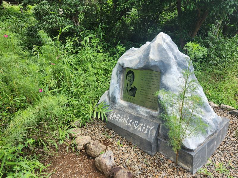 駐車場には登山家・田部井淳子さんのモニュメントがあります。夏なのに周辺にはモニュメントを囲うようにコスモスが咲いていました。田部井さんパワーでしょうか。