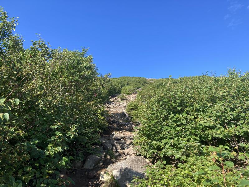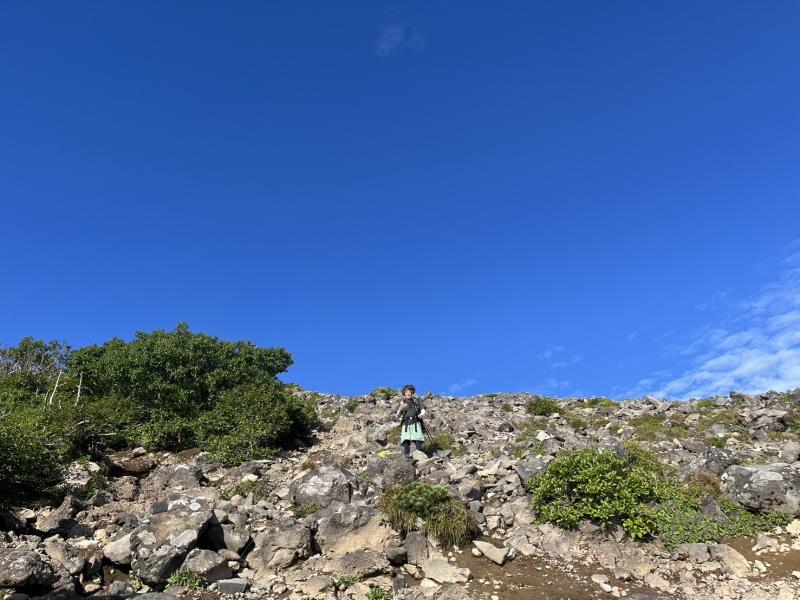 9合目手前で森林限界を超え岩場になります。