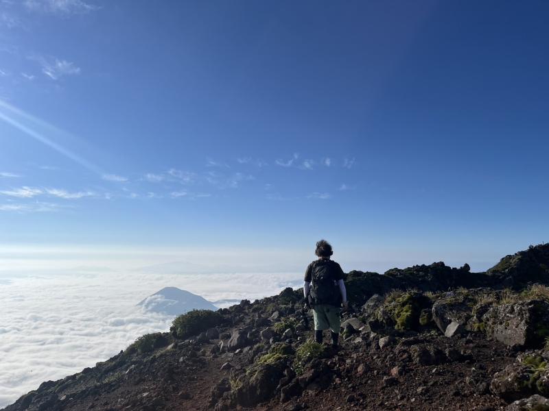 御鉢を歩いている時は風で体が冷えるくらいでした。