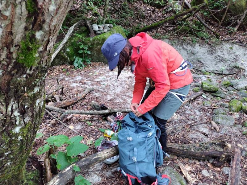 ・最初の林道歩き、沢が終わってからの登山も長いので、替えの靴があると楽です。
