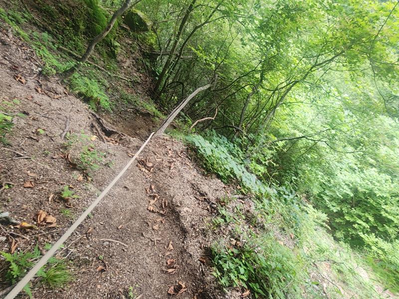 ・詰め上がると日向八丁尾根と合流します。登山道ですが日向山までかなり急な尾根を下ります。