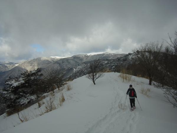 基本的に夏の登山道を歩きますが、時に雪があるときにしか歩けない箇所に寄り道しながら進むと宍粟の山並が出迎えてくれます。阪神間からアクセスもよくスノーシューを楽しむにはいいところです。