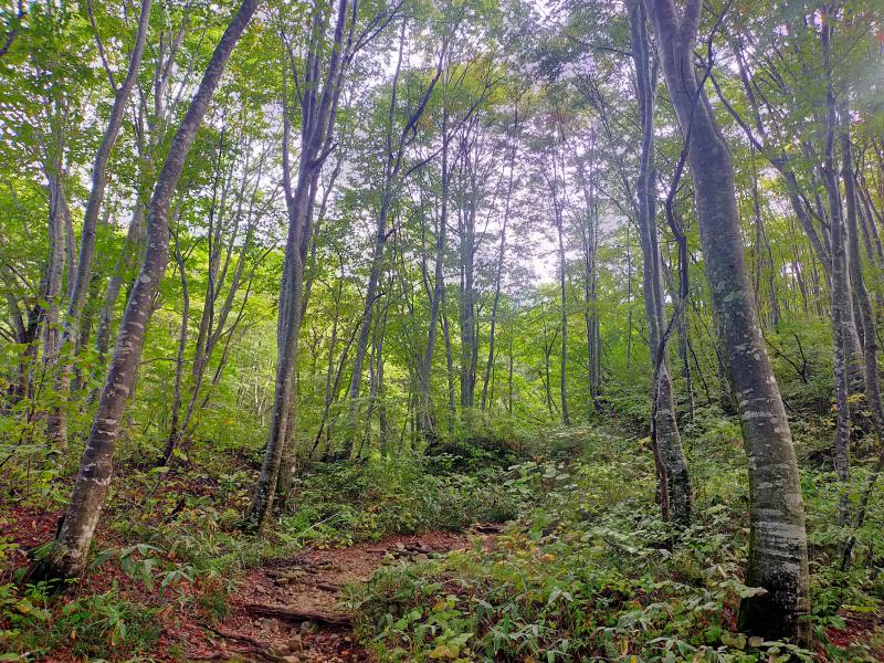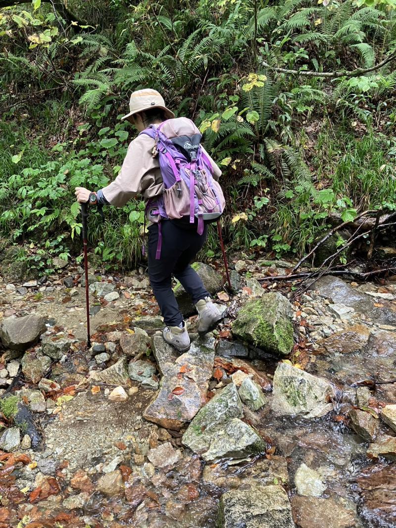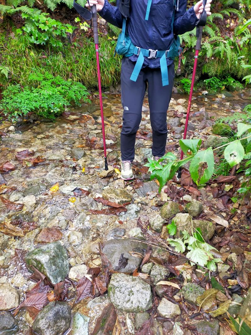 水場を数回渡り(雨で水量が多くローカットはやや濡れてました)幅のある段差あり(背が低いのでストックあって何とか登れるくらい)
