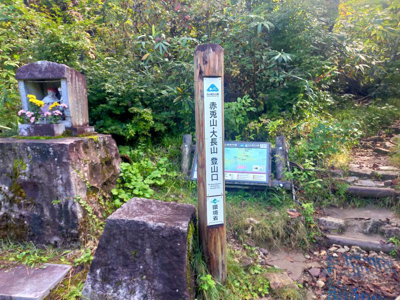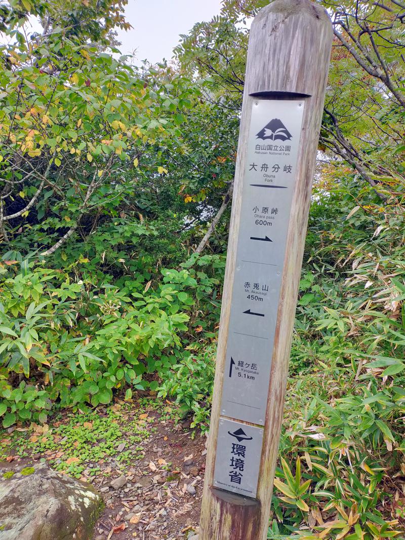 - 登山口55分小原峠30分大舟分岐20分赤兎山山頂20分赤兎避難小屋20分赤兎山山頂12分大舟分岐35分小原峠50分登山口