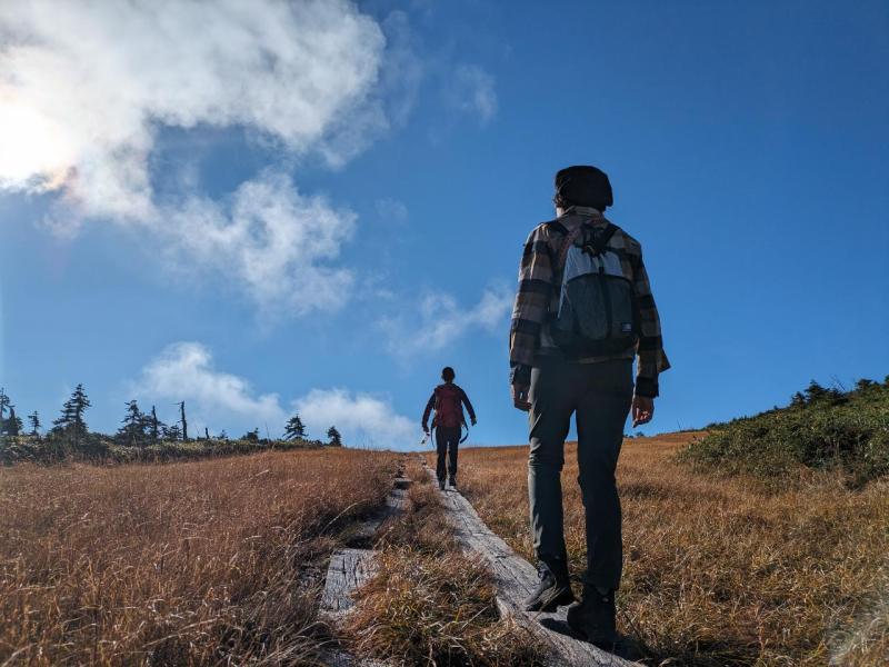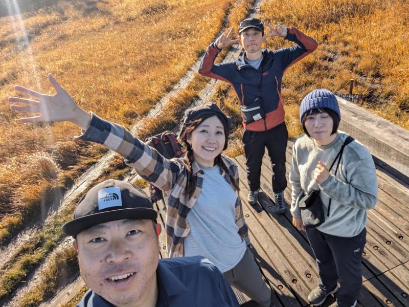 - 16日は曇りのち雨予報でしたが17日は快晴。木道は濡れていたので滑りやすい