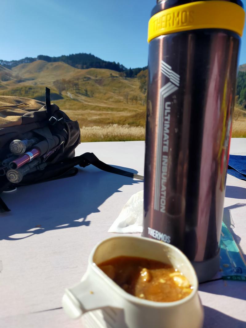 山専ボトルに豚汁を入れて来たので、温かいお汁とおにぎりで大満足。