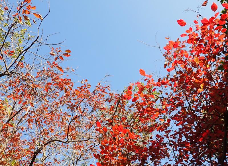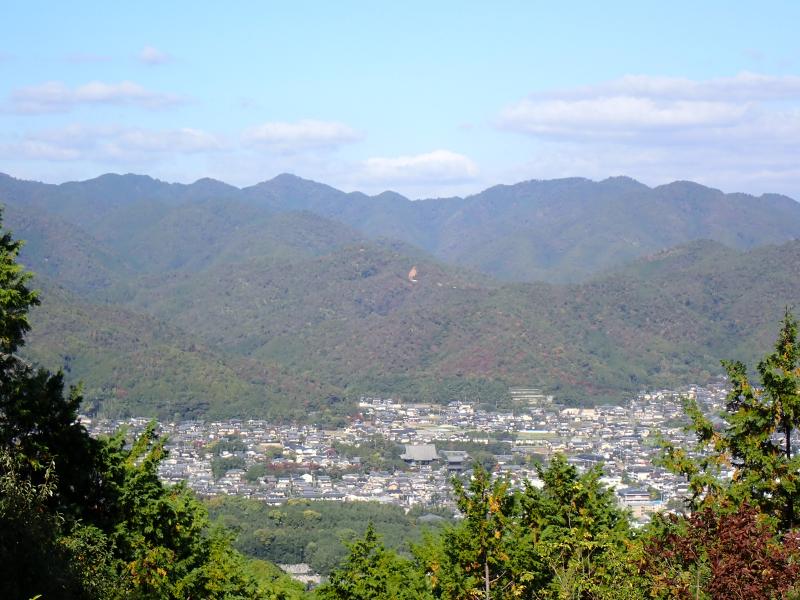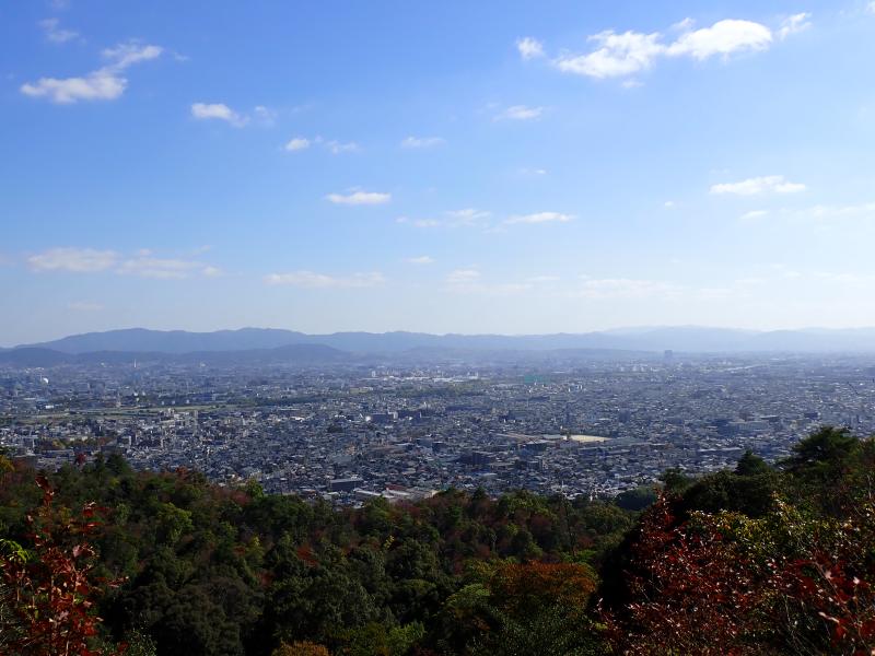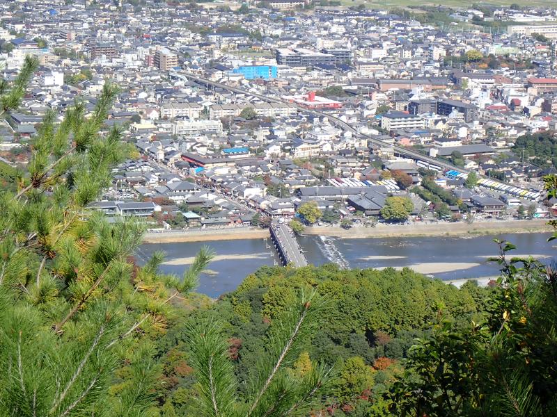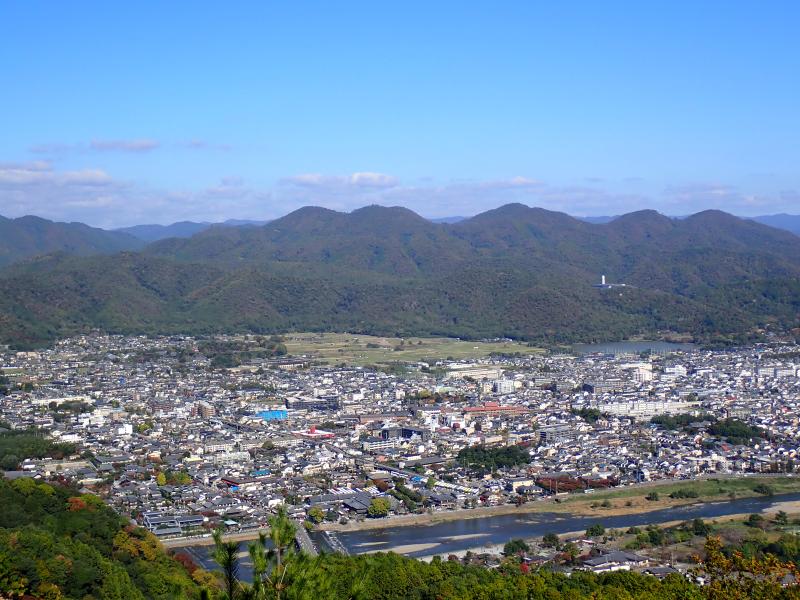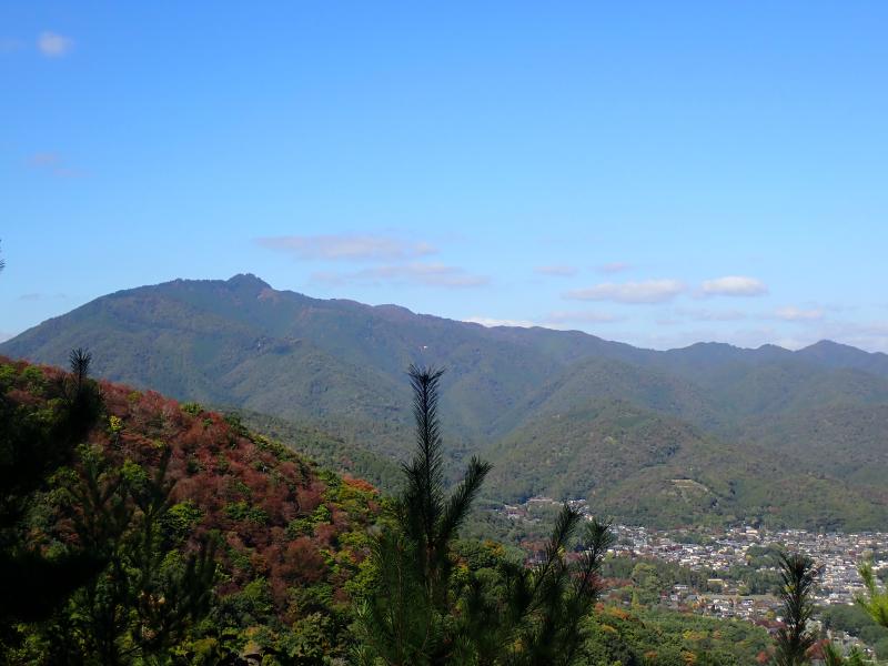 くさりの谷・登山口から入山。登山口の手前にある苔寺は、そろそろ紅葉が見ごろな感じでしたが、山の紅葉はもう少し先という感じでした。道なりに進んでいくと、60分ほどで松尾山の山頂に到着。少し先の展望ポイントからは、嵐山の渡月橋を眺めることができます。