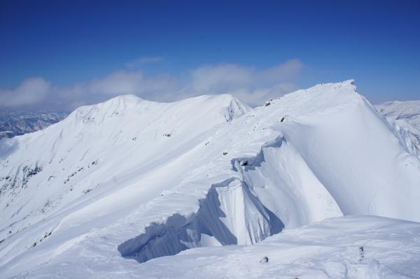 トマの耳からオキの耳にかけては雪庇も多く西よりに歩きたいですが、こちらは滑落に注意が必要です。ピッケルに持ち替えておいたほうが無難だと思います。