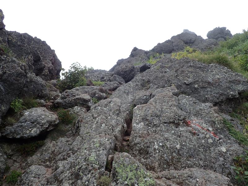 南峰手前から鎖やら岩がゴツゴツしてきますが、鎖もしっかりしているし、そこまで怖くありません。