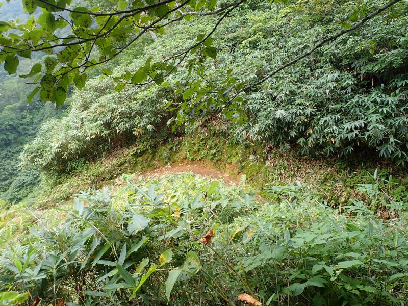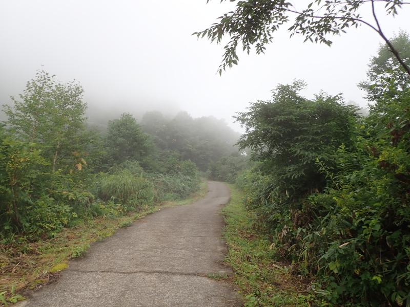 光明滝まで舗装路ですがとても急です。グリップ弱い靴は滑りそう。