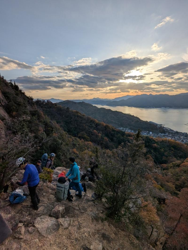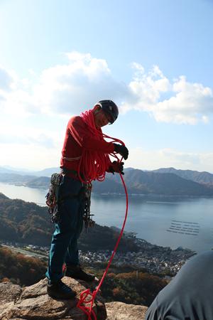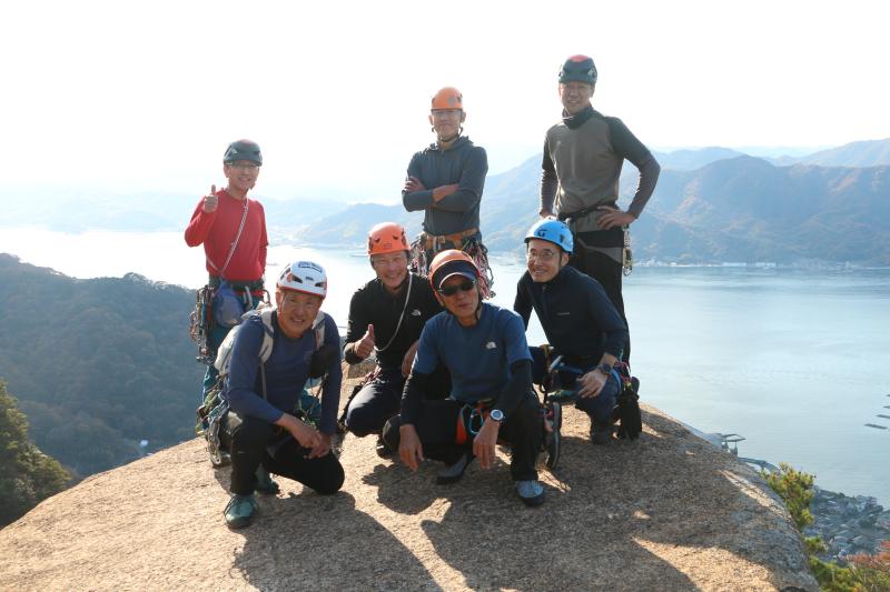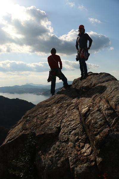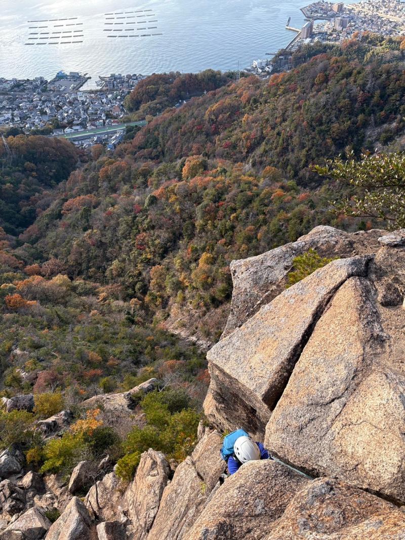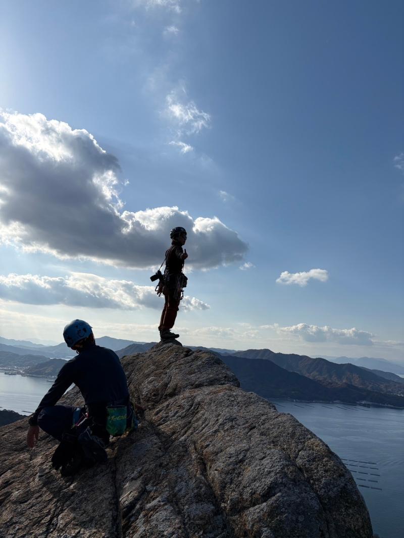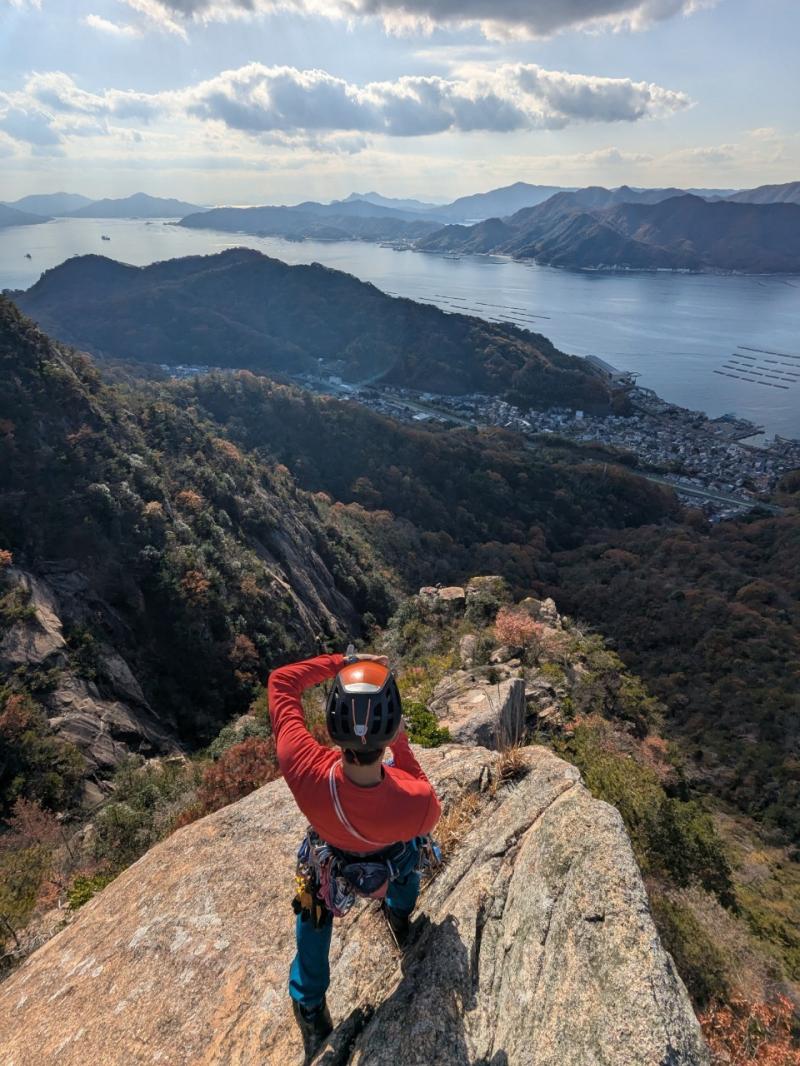 瀬戸内海の絶景を背負ってクライミングはたまらないものです。