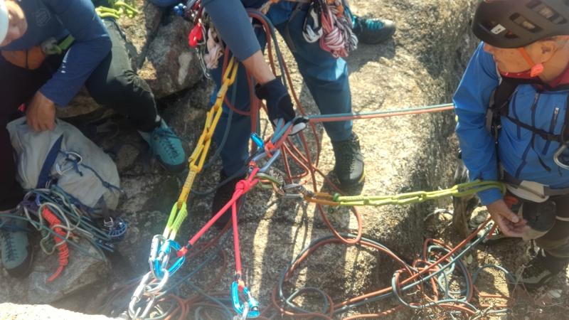 初心者の方もいて、まずセルフを取ること、足でロープを踏みつけ余裕もって懸垂構築をすることなど基本の基本を再復習したしました。