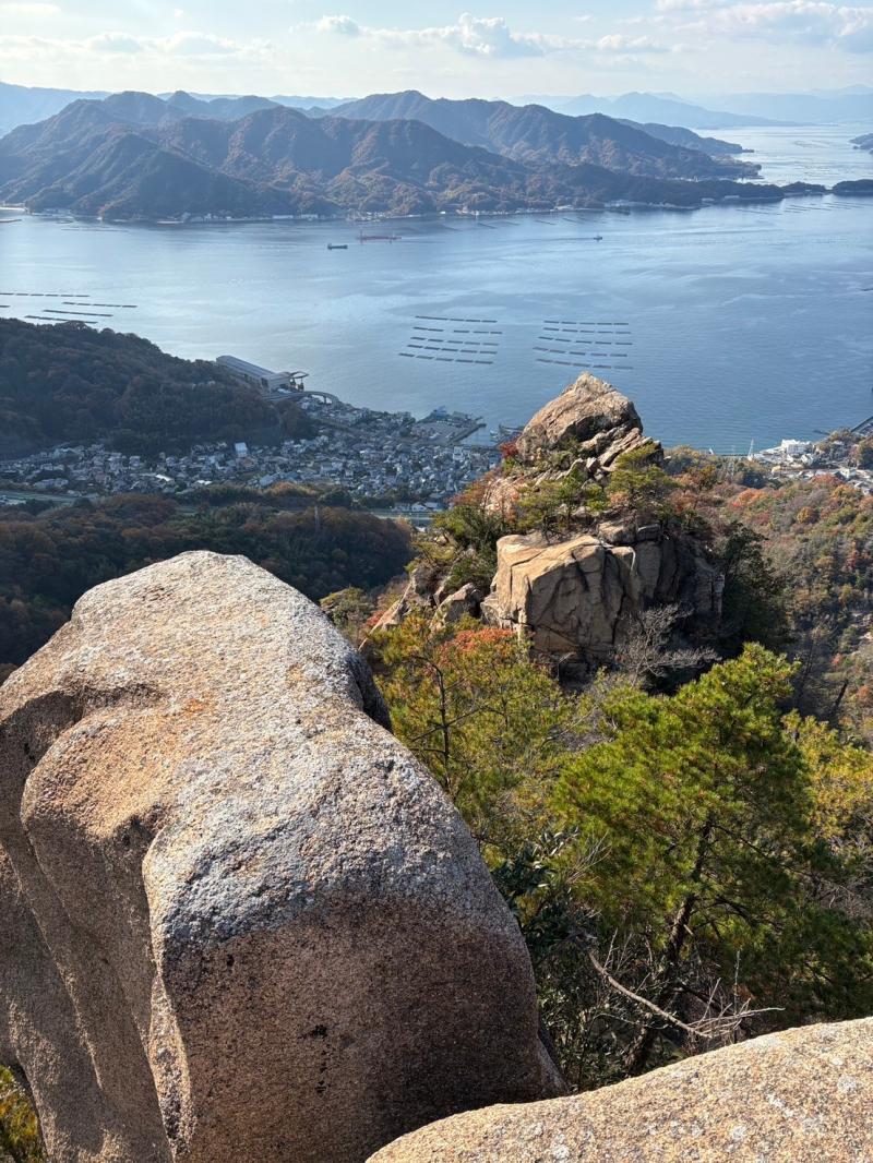 ドンガメ岩から望む瀬戸内海は美しく、岩を直登してからの素晴らしい大展望楽しめる