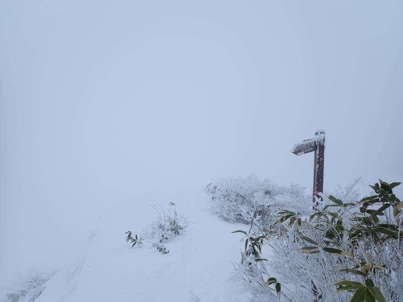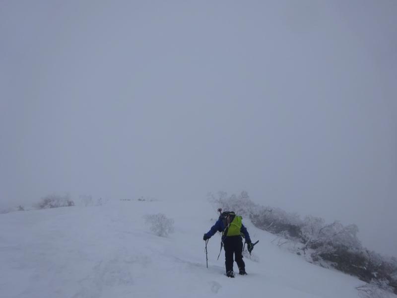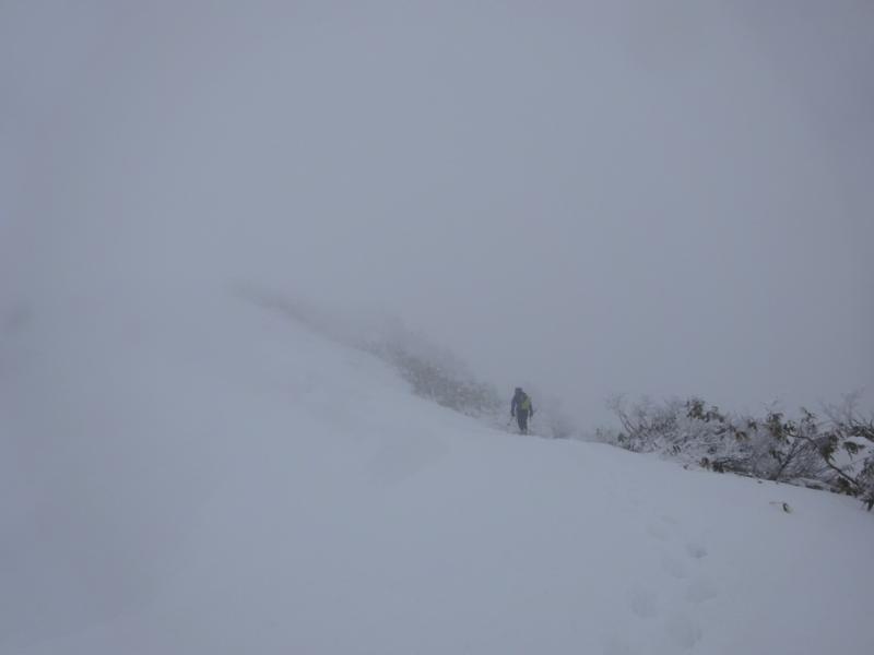 視界は悪いですがルートがわからないほどではなく、天気も午後は回復基調なので、様子見ながら進みました。