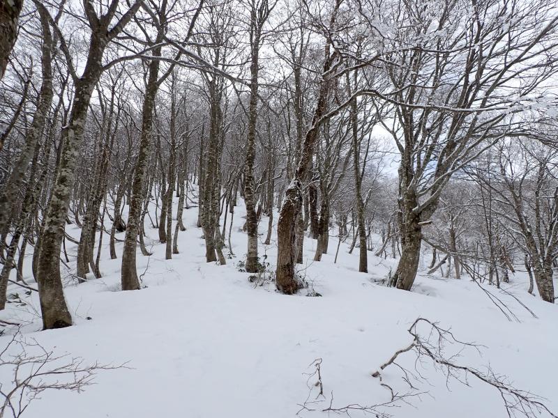 シャクナゲ平手前は急登、雪量が微妙なのもあって、石・木の根・土がたまにでて、ひっかかったり滑ります。ゆっくり登りませんとね。