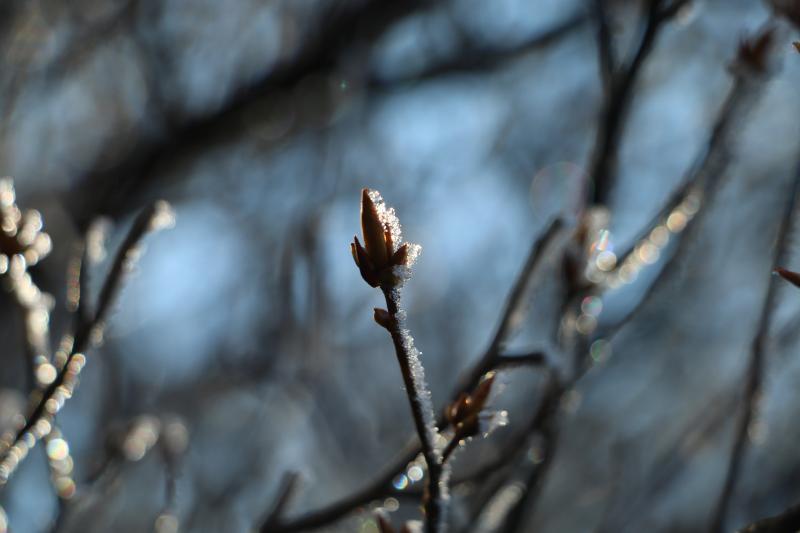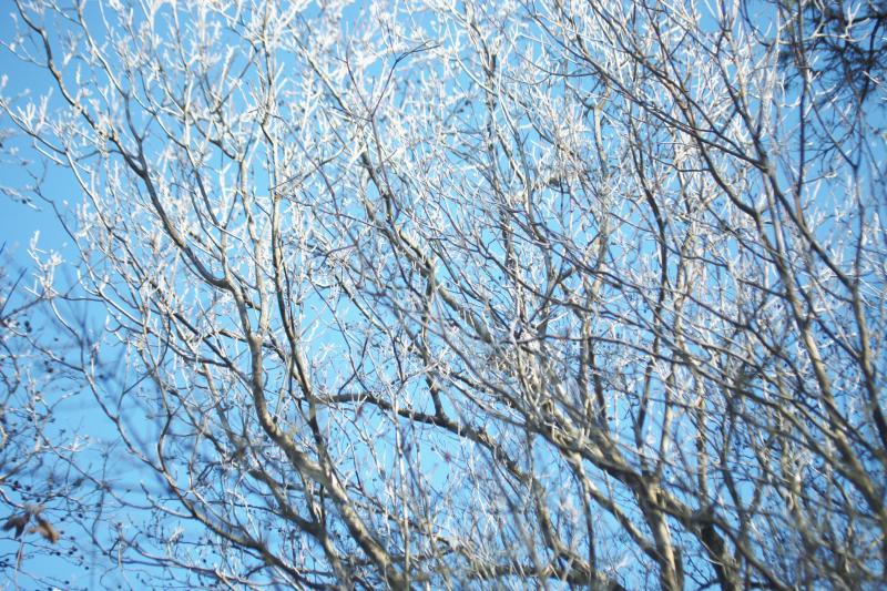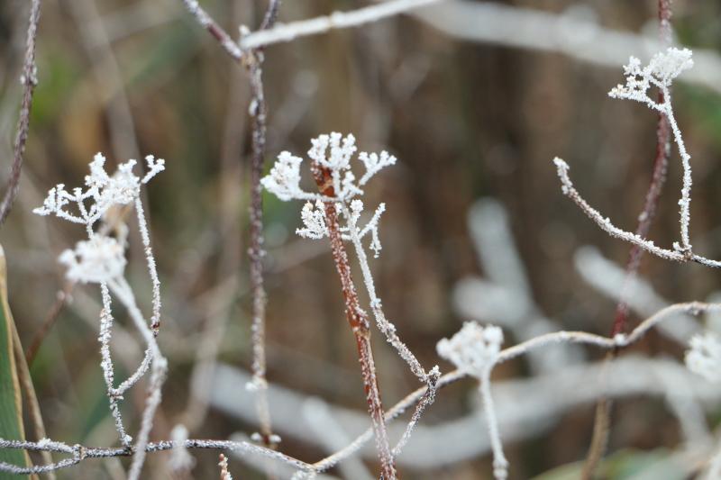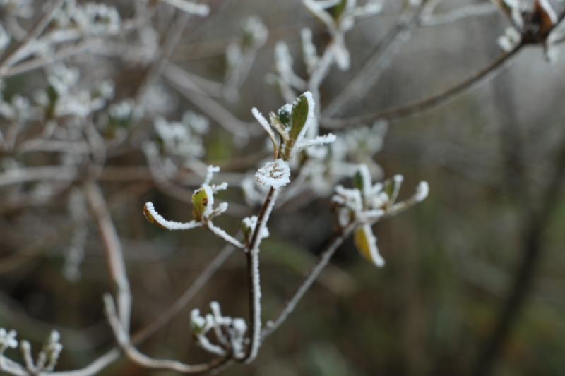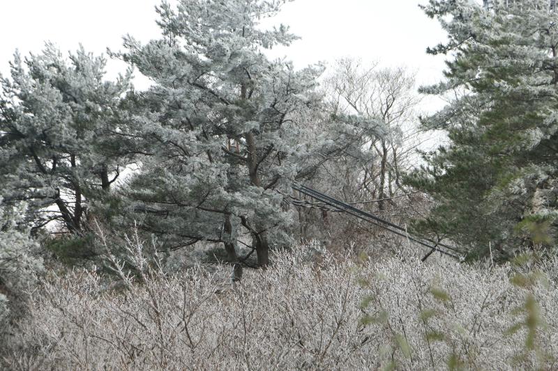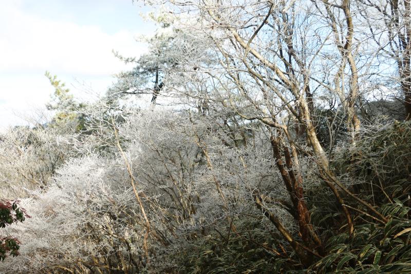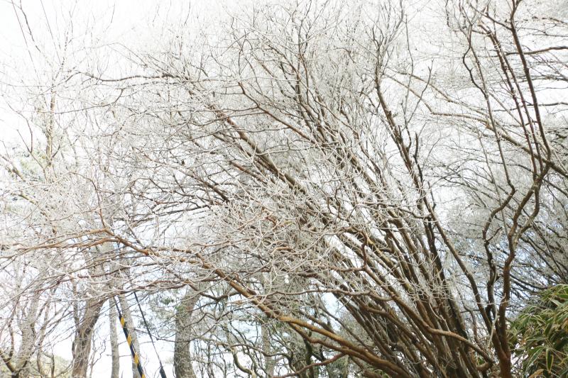 縦走路には 霧氷も見れました。 氷点下で水蒸気や過冷却水滴を含んだ冷たい風が地物に衝突して凍結する氷の自然現象です。樹氷、粗氷、樹霜の3種類に分類されます。