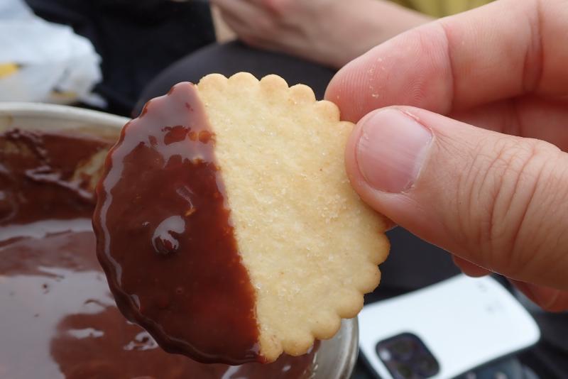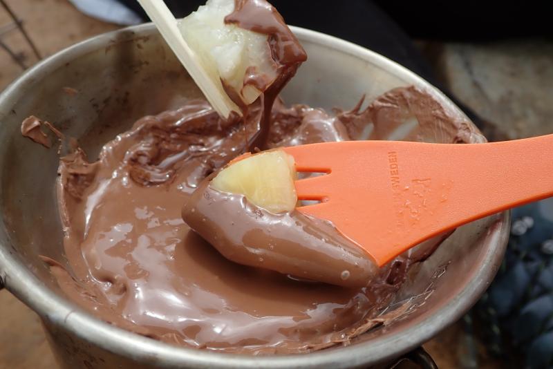 チョコフォンデュは、私のお気に入りお菓子ハーベストをつけたらこれまた美味しかったです。