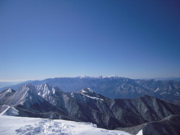 360度の展望を誇る阿弥陀岳の山頂からは、富士山も、南アルプスも、中央アルプスも、北アルプスも・・・