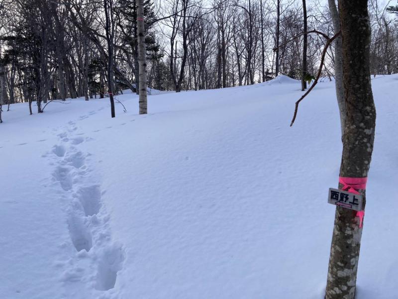 このルートだと林道歩きで西野上ピークまで行けるので、