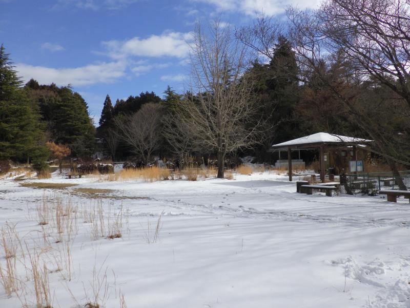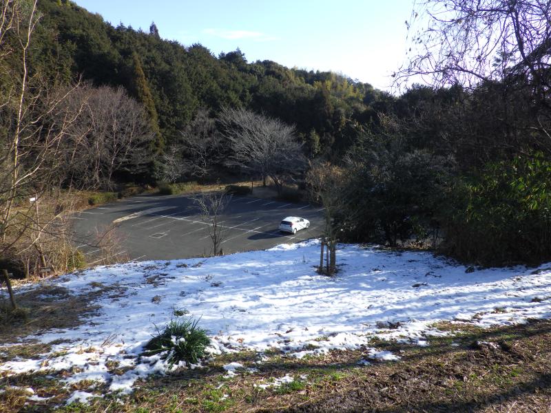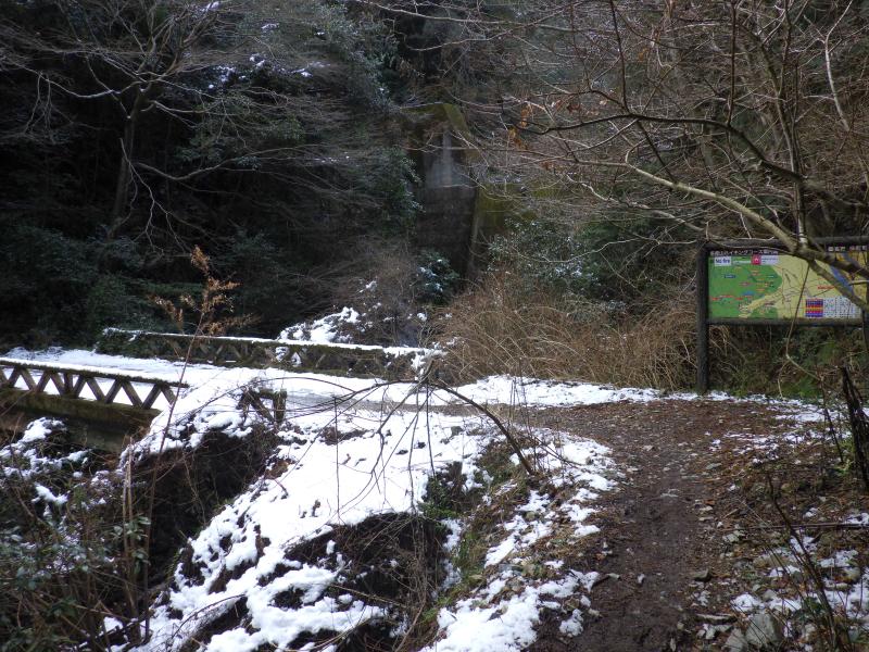 途中、1か所の展望台がありますが、ここから下りになり、遠回りに道がつけられています。このままいくと長そうなので、黒岩尾根で下ることにしました。黒岩尾根は普通の登山道で尾根道になります。下部まで雪がついていて、多度峡の上流に出ます。夏はバーべQで似ぎあうのかどうかですが、今はひっそりしていました。