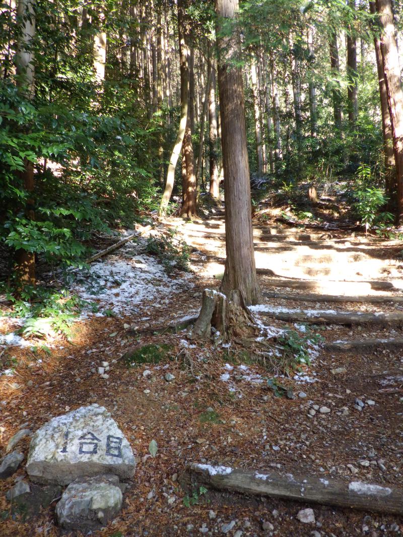 ②健脚コースは階段の登山道で、合目の標識があります。標高が低いのでどんどん進んでいきます