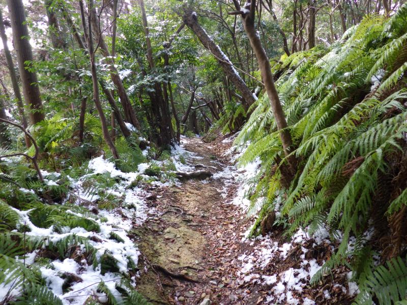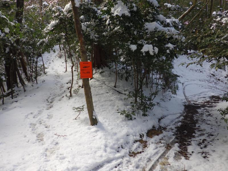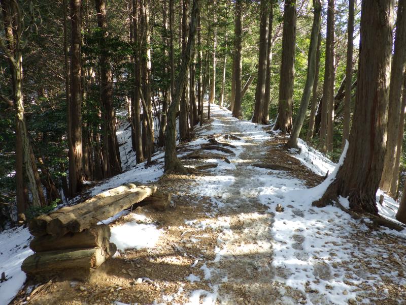 ⑥多度山から先の瀬音コース(縦走路)は人が少なくなりますが、登山道は林道なのでしっかりしています。ここから急に雪が増えます