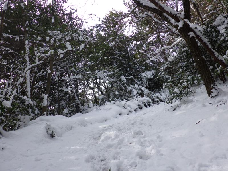 山上公園から北西は縦走コースになっていますが、こちらは日が当たらないからか雪の量が急に増え、5㎝程度の雪があり、立派な雪山でした。