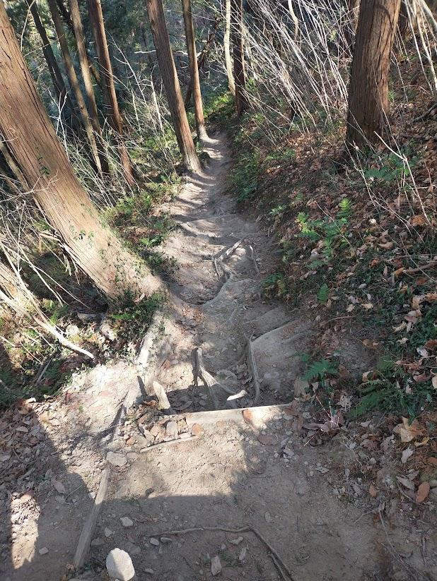 北側からは下山のイメージしかなくて、登ってみると階段が長くて汗かきました。