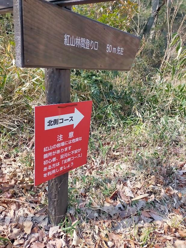 下りてきたら、紅山北側登山口(岩倉登山口方向)へ。