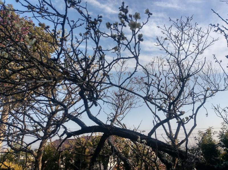 山の梅はまだまだです。公園は見ごろになってきました。