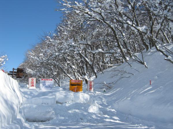 - 駐車場 -(0.15)- 通行止 -(0.20)- 横手別れ北口 -(1.0)- スキー場の上 -(0.15)- 大沢 -(0.15)- 横手別れ南口 -(0.25) - 一ノ沢 -(1.0)- スキー場
