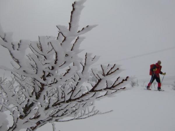 踏み抜く雪でしたが、「タブスのスノーシュー」を履いていたので快適に登れました。