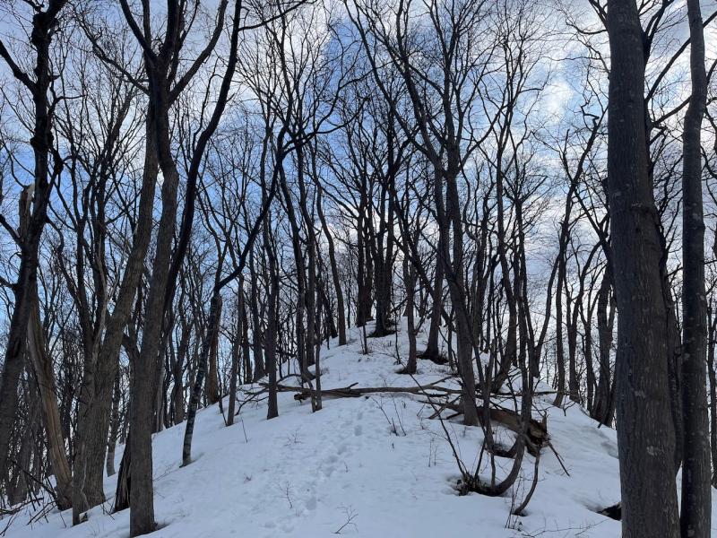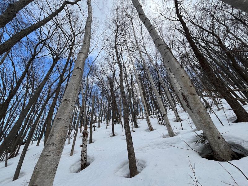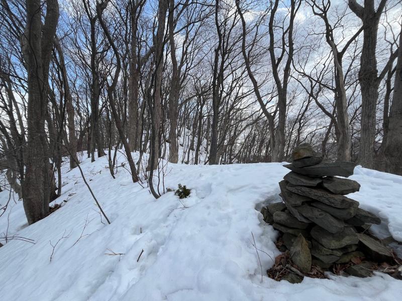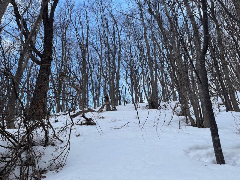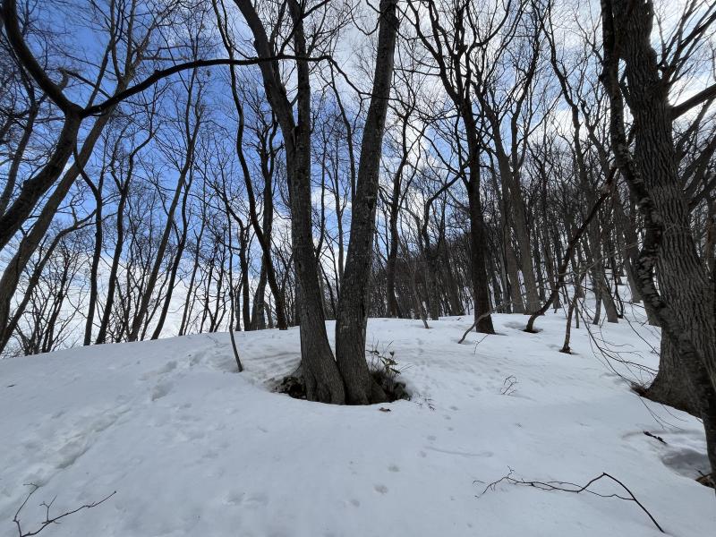 明確な登山道がなく、夏はうっそうとした森が広がる山なので、登るなら積雪期です。