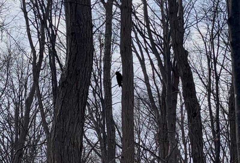 しばらく観察していると、カラスもやってきて、クマゲラは変な鳴き声を出しながら逃げて行ってしまいました。