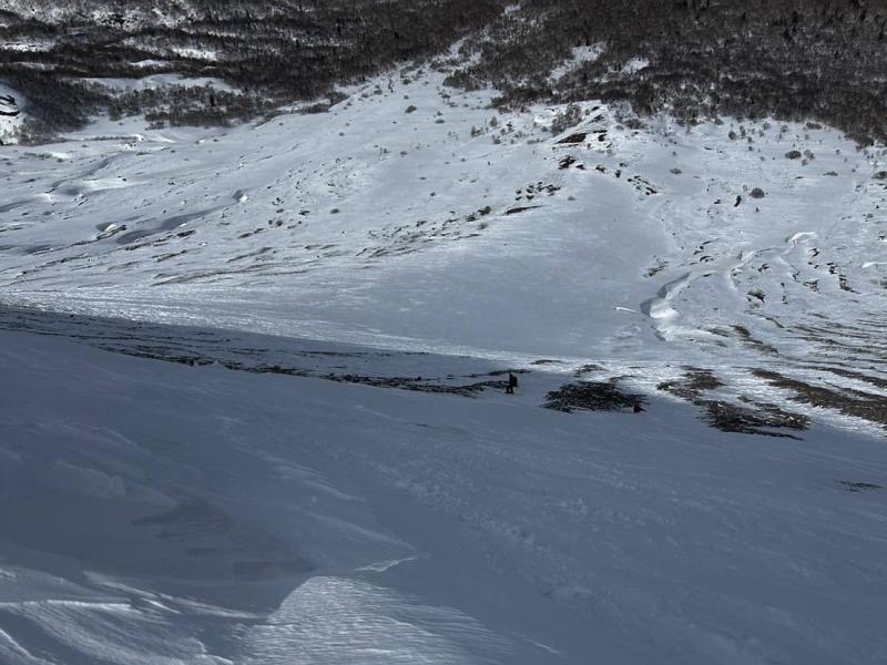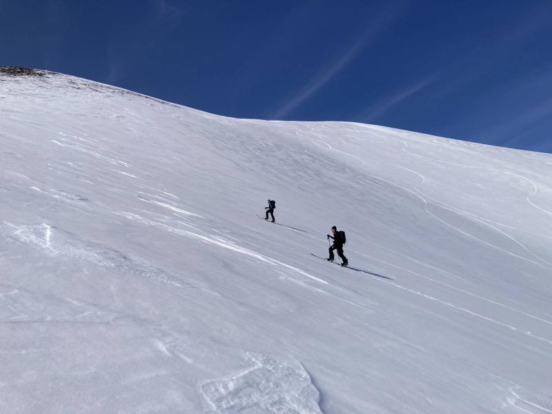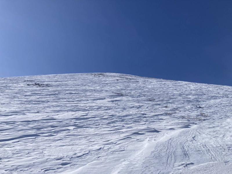 上部はかなり硬めのシュカブラアイスバーンでしたが、