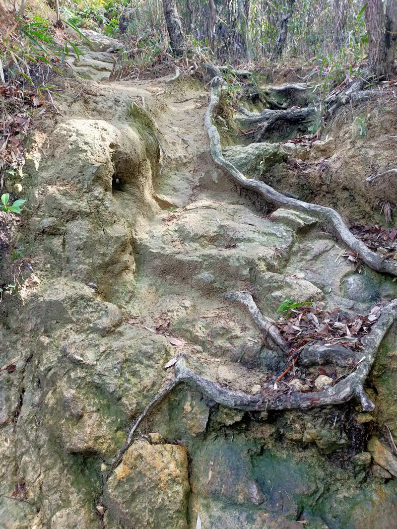 - 岩のくぼみに水が溜まっているところもありましたが、滑るようなところはほぼありませんでした。ロープがあります。雨の後で少し水を含んでいました。山頂は椅子がたくさんあります