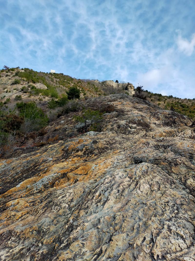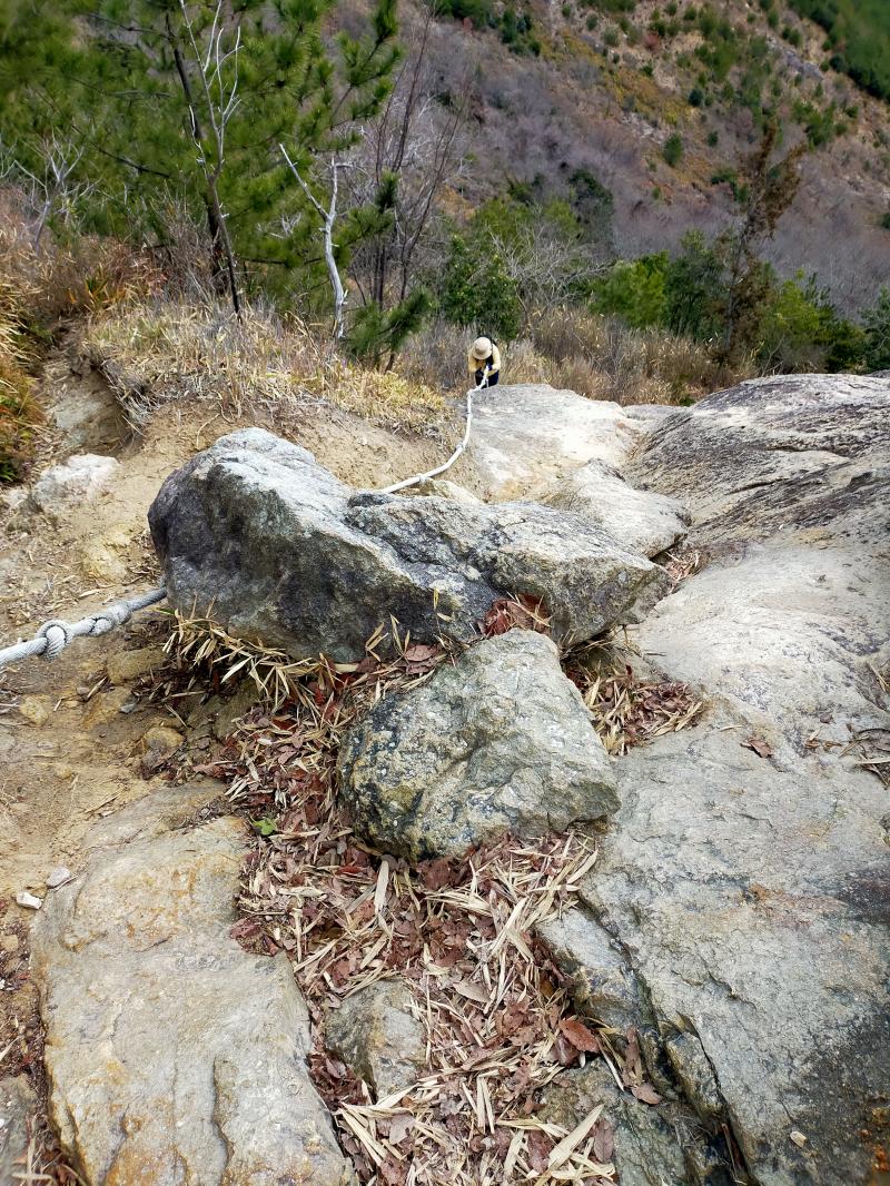 ロープもつけてくれているので、不安なところは少し力を借りながら、登りは巻き道は使わず。