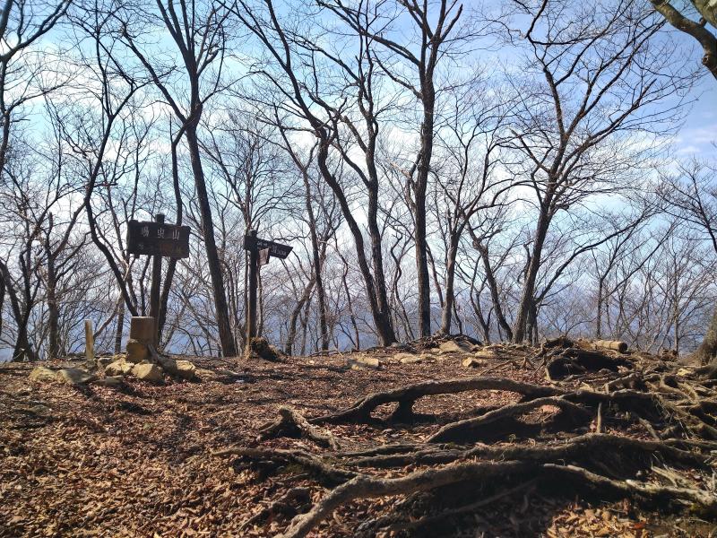 岩屋観音で一息ついて少し登ると斜度がキツくなっています。それに加えて地面が凍結し始めました。地表2センチくらいは溶けているのですがその下はカチンカチンに凍結。突くストックの返りが岩をついたかのよう。不用意に踏み込むと滑るかもしれません。急斜面なので滑ると落ちかねないので踏み込む前に軽く加重しグリップを確認しながら慎重に足運び進みます。一般登山道が近くなると奥日光からの風が吹き抜けてくるようになり少し肌寒いくなりました。ですがウインドブレイカーなど着ることなく捲っていた袖を伸ばす程度で対応できました。一般登山道と合流する【梅ノ木峰】からは快適高速道路。相も変わらず積雪はなかったのであっという間に明るい山頂に辿り着きました。女峰山や赤薙山の眺めが良くそれなりの広さもあるので休憩するのにも丁度良い場所となります。