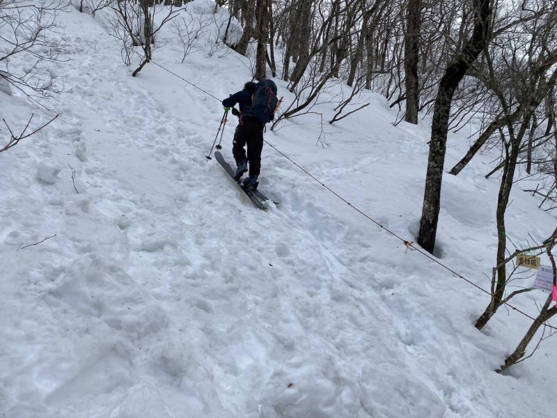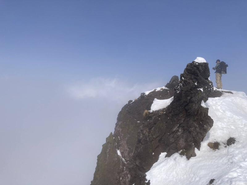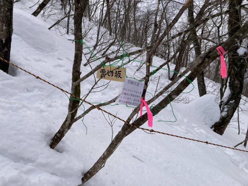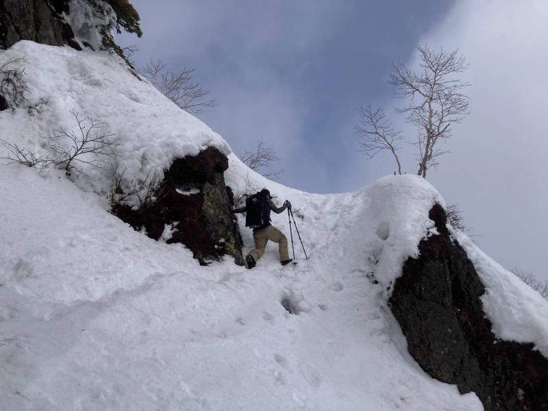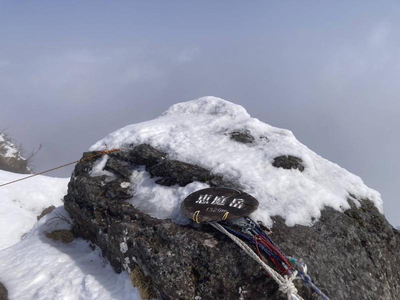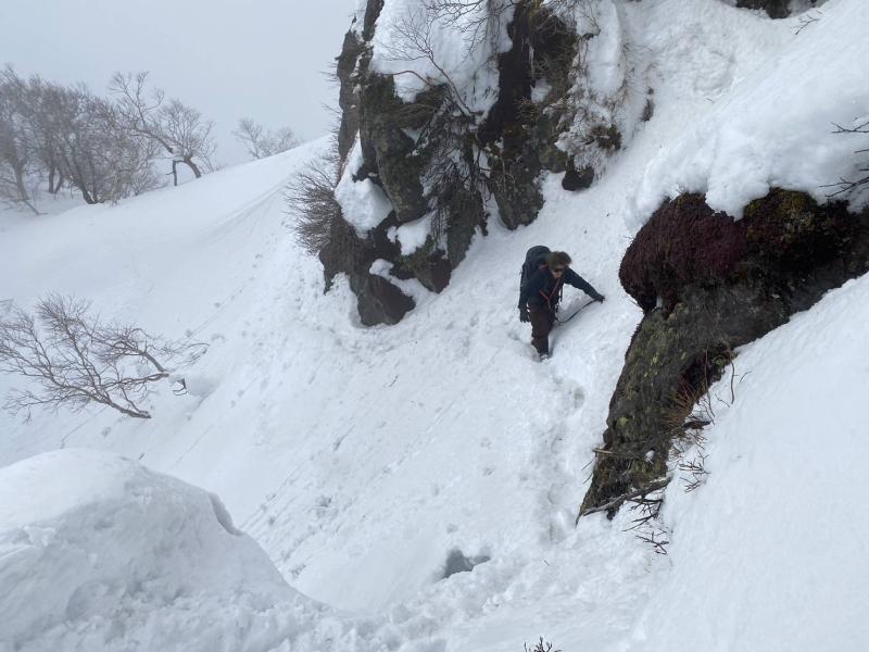 山頂付近滑落防止の為、ピッケルのみ使用。